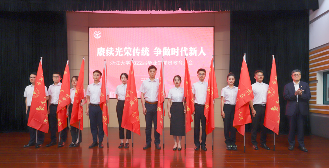 浙江大學召開2022屆畢業(yè)生黨員教育大會,校黨委書記任少波為赴西部及重點單位就業(yè)畢業(yè)生代表出征授旗