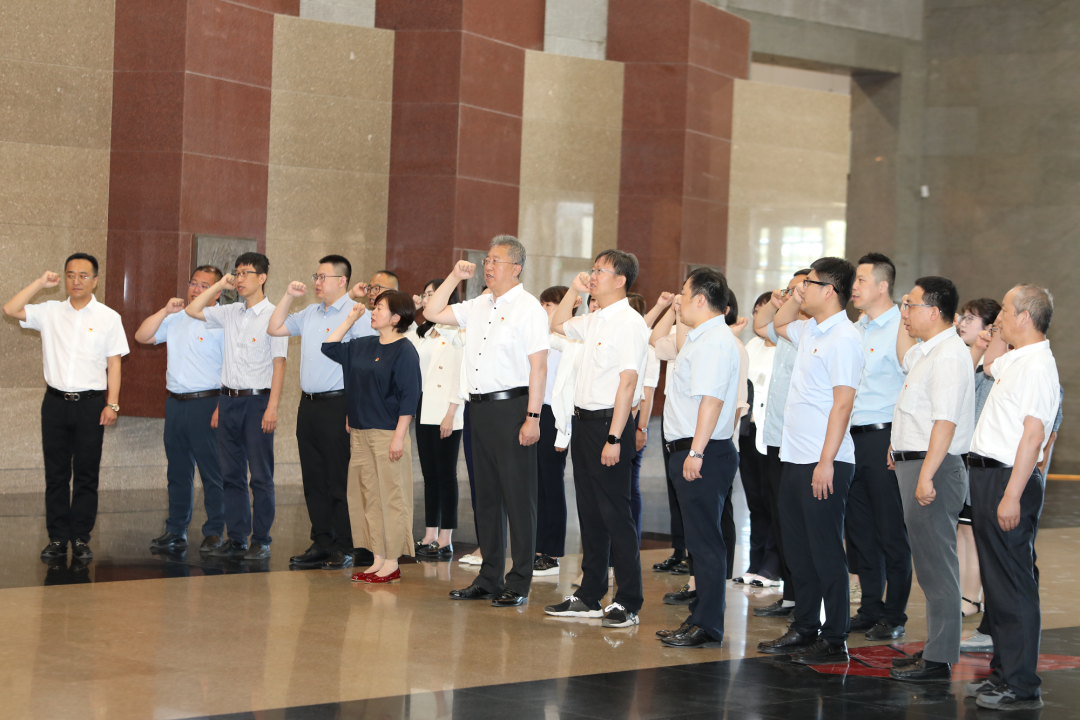 次日,全體人員來到遼沈戰(zhàn)役紀(jì)念館序廳,進(jìn)行思想政治教育實(shí)踐基地揭牌儀式,由大連理工大學(xué)城市學(xué)院黨委書記郭玉鑄和遼沈戰(zhàn)役紀(jì)念館副館長龔兵共同為“思想政治教育實(shí)踐基地”揭牌。黨委組織部部長楊海亮帶領(lǐng)全體同志一起重溫入黨誓詞,鏗鏘有力的宣誓聲響徹大廳,振奮人心,表達(dá)了堅(jiān)定的信仰信念和矢志奮斗的信心決心。