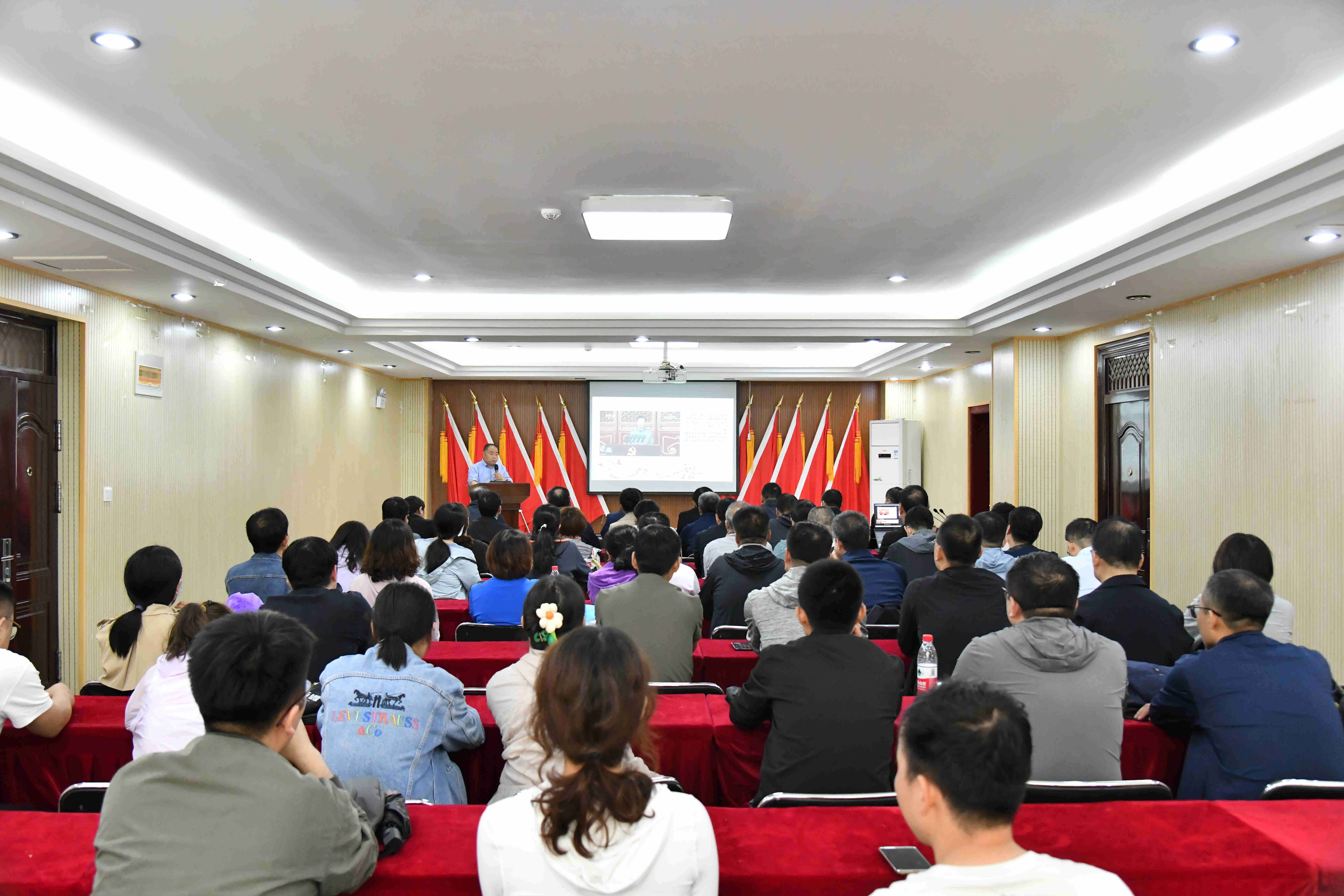 全體人員認(rèn)真聽取《踏著總書記足跡,重溫總書記講話,感悟國之大者》專題黨課