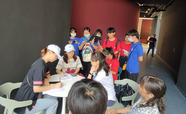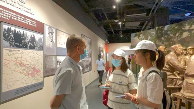 圖6:2021年7月3日,董研會暑期社會實(shí)踐隊(duì)于中原解放紀(jì)念館同參觀人員交流