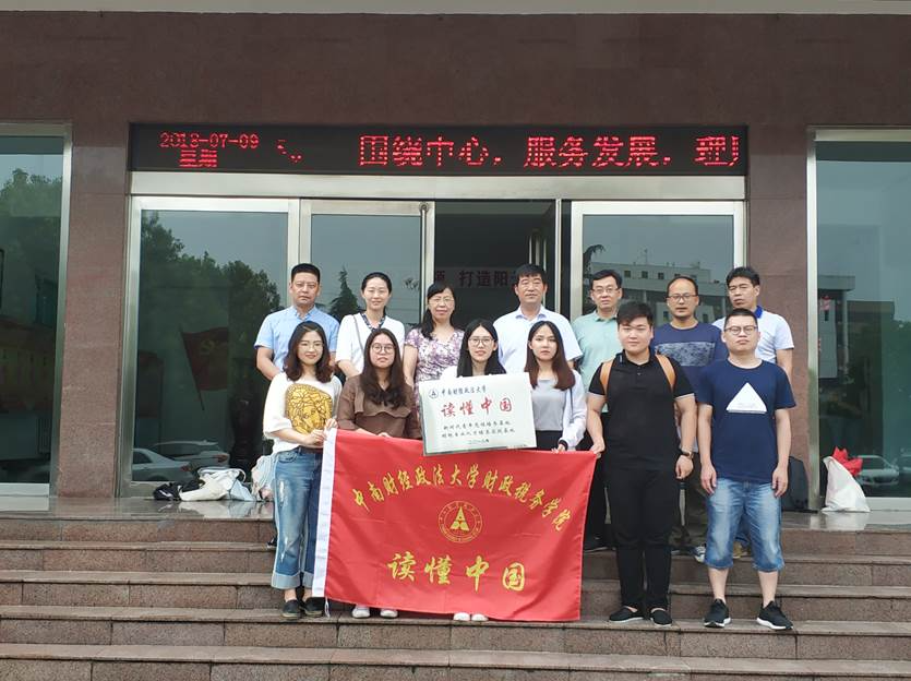 由中南財經(jīng)政法大學財政稅務學院周春英教授、研辦主任袁媛老師帶隊的河南寶豐暑期社會實踐隊一行8人于2018年7月8日抵達河南省寶豐縣,開展專業(yè)實習、青年黨性培養(yǎng)等教育實踐活動。此次暑期調研是一次尋根與實踐的結合,于追溯中學習,于學習中思考,于思考中收獲,于收獲后升華。根據(jù)寶豐財政局的委托,結合財稅熱點問題展開調研,形成具有建設性意見的報告。