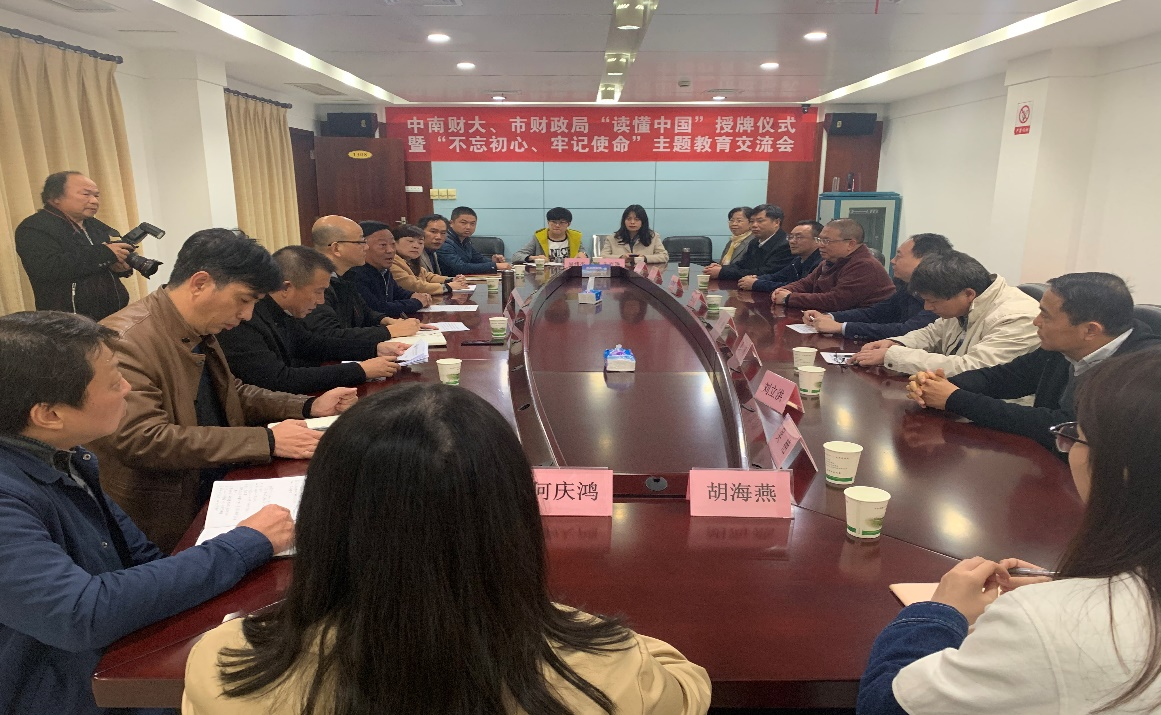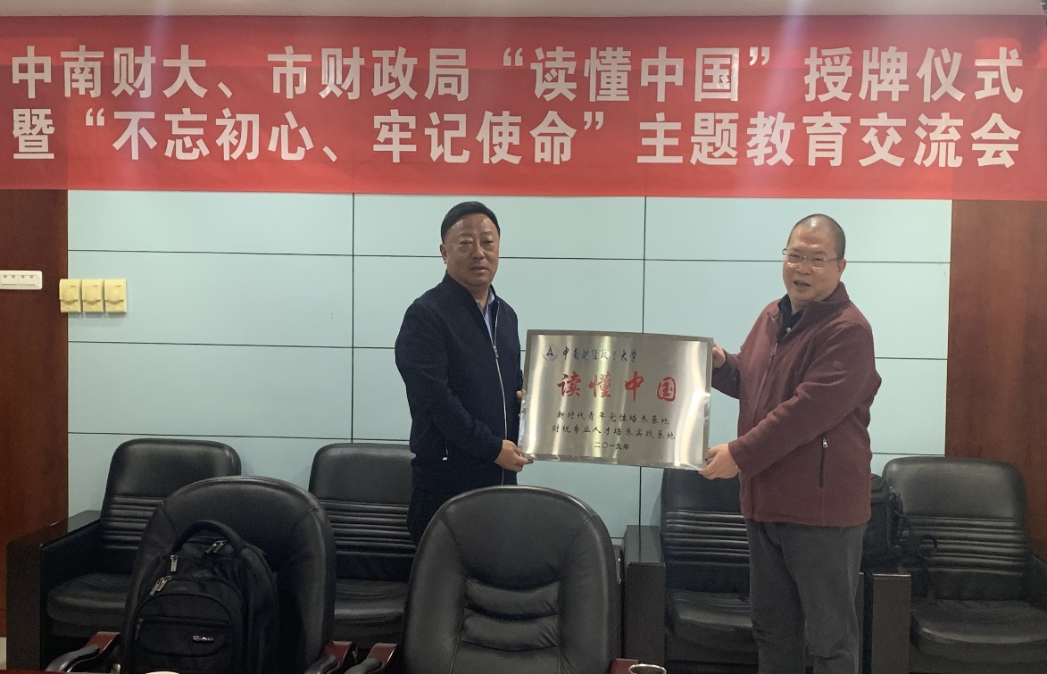 為學習貫徹黨的十九屆四中全會精神,深入開展“不忘初心、牢記使命”主題教育,2019年11月21日下午,學校宣傳部部長周巍、科研部副部長皮海鵬、研究生工作部副部長吳凡、財稅學院黨委書記張永清及財稅學院師生代表一行12人赴洪湖市財政局開展了“讀懂中國—‘新時代青年黨性培養(yǎng)基地’暨‘財稅專業(yè)人才培養(yǎng)實踐基地’”(簡稱“雙基地”)掛牌活動。