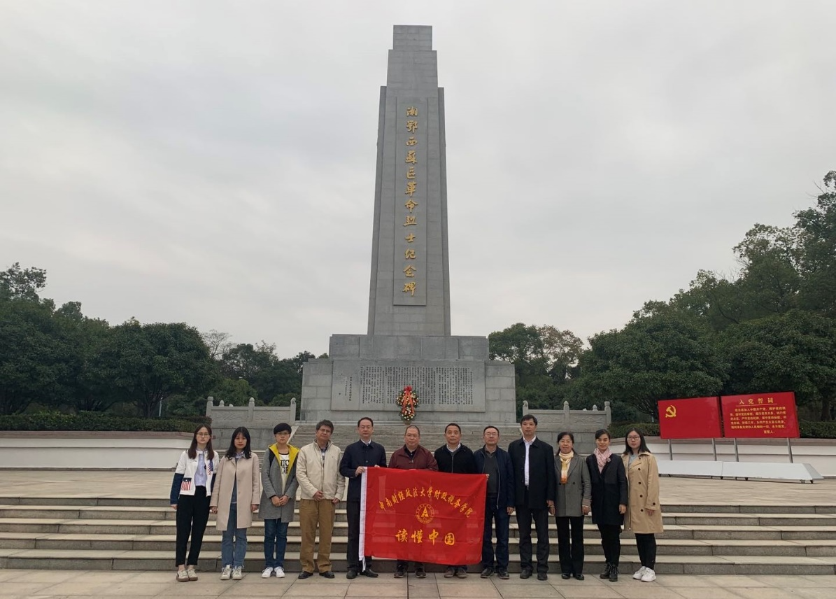 在授牌儀式結(jié)束后,全體成員在湘鄂西蘇區(qū)革命烈士紀念館開展了紅色教育,向革命烈士紀念碑敬獻花籃,全體師生默哀三分鐘,重溫了入黨誓詞,在洪湖的紅色基因中更深地體會到了作為一名共產(chǎn)黨員的責任與使命。之后,瞻仰烈士紀念碑,表達了對革命烈士深深的敬意。