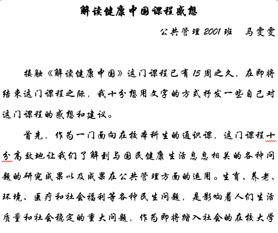 開設《解讀“健康中國”》通識課程,契合黨中央提出的“健康中國”戰(zhàn)略,有助于學生從專業(yè)角度理解和分析“健康中國”對于實現(xiàn)全面建成小康社會的重要意義,更好地貫徹落實黨的十九大和十九屆四中全會精神,推動“健康中國”戰(zhàn)略的順利實施。課程通過介紹“健康中國”的意義、內容以及健康的各種決定因素,有助于廣大學生牢固樹立“健康第一”理念,把健康教育融入學校教育教學各個環(huán)節(jié),引導學生樹立正確健康觀,形成健康的行為和生活方式。課程涉及到經濟學、管理學、法學、社會學等多學科理論和知識,符合學?!敖浄ü堋比谕ǖ膶I(yè)培養(yǎng)目標和辦學定位。
